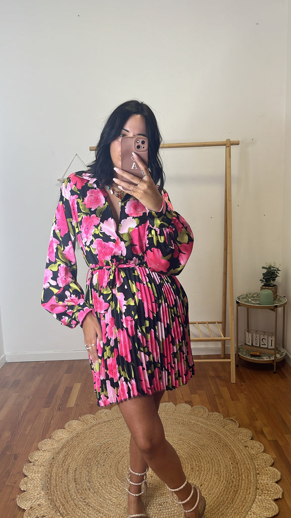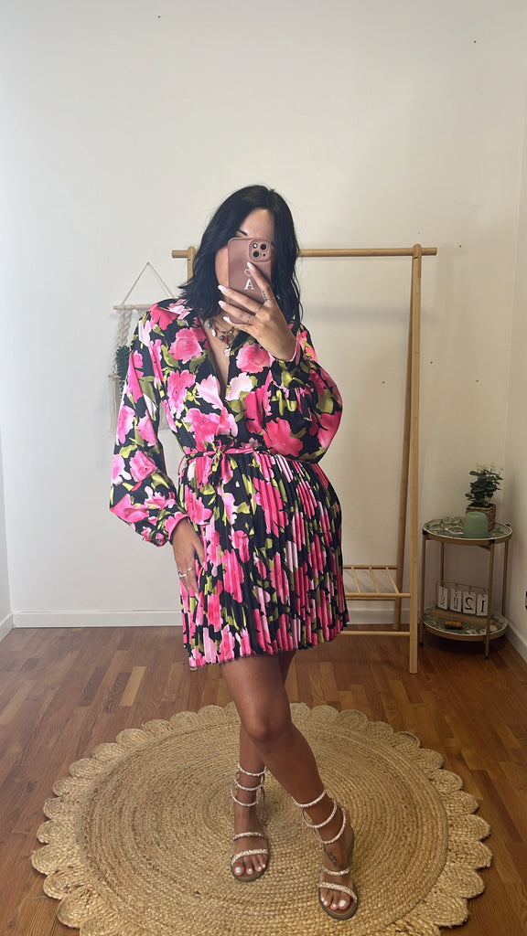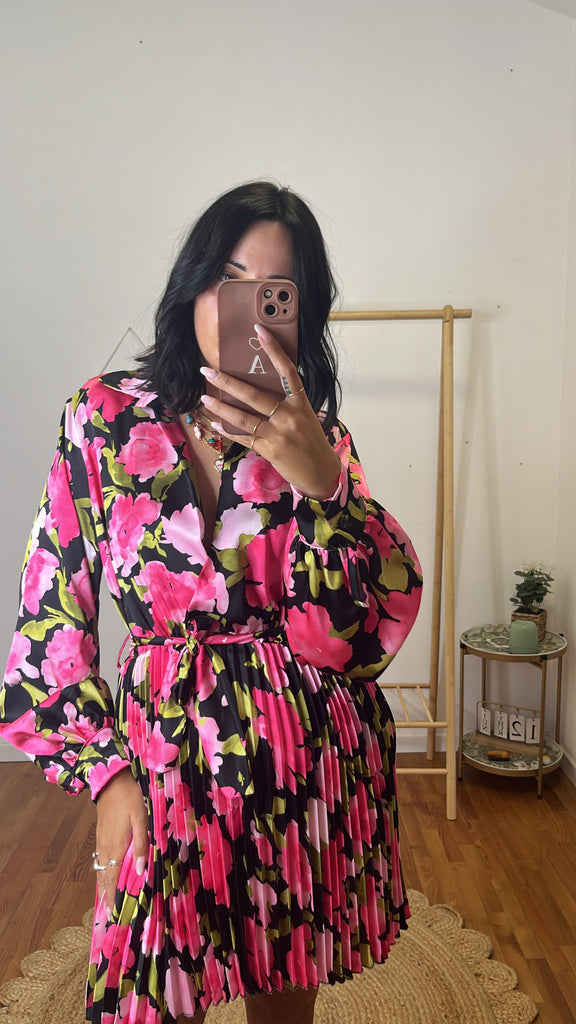 Abito Esmeralda Nero , tg unica da una 40 ad una 46, in raso satin, scollo a V, elastico in vita e cintura . Parte sotto leggermente plissè, sfoderato