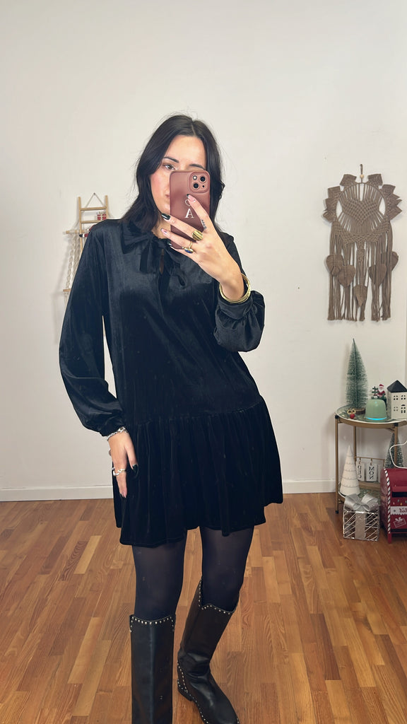 Abito Hannah nero, tg unica fino 46 anche di più , molto bello anche con cintura , manica ampia sul fondo .