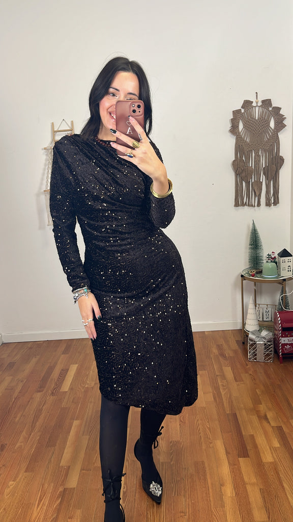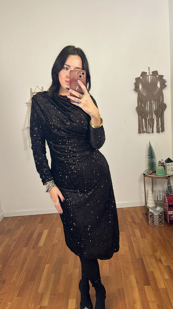 Abito Helen testa di moro, tg unica fino 44, foderato fino a metà , stondato sul fondo .
