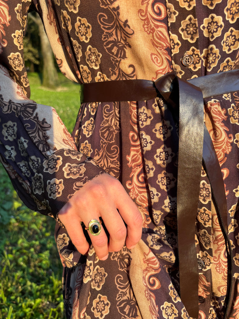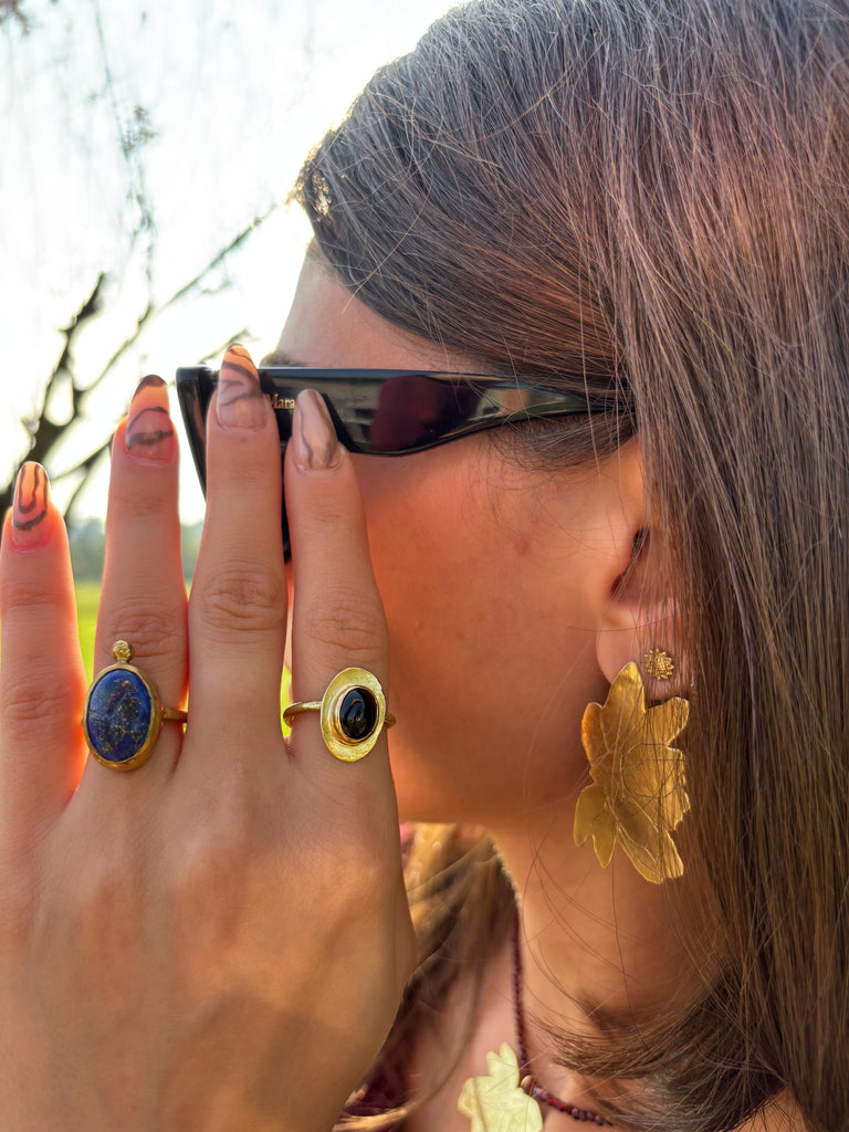Anello in ottone con onice nero , regolabile , molto leggero