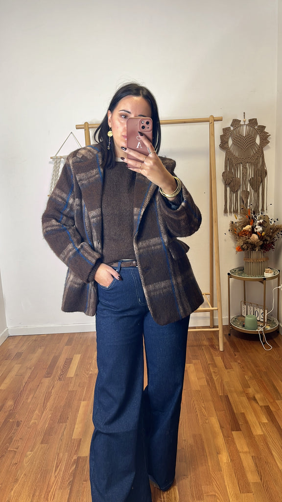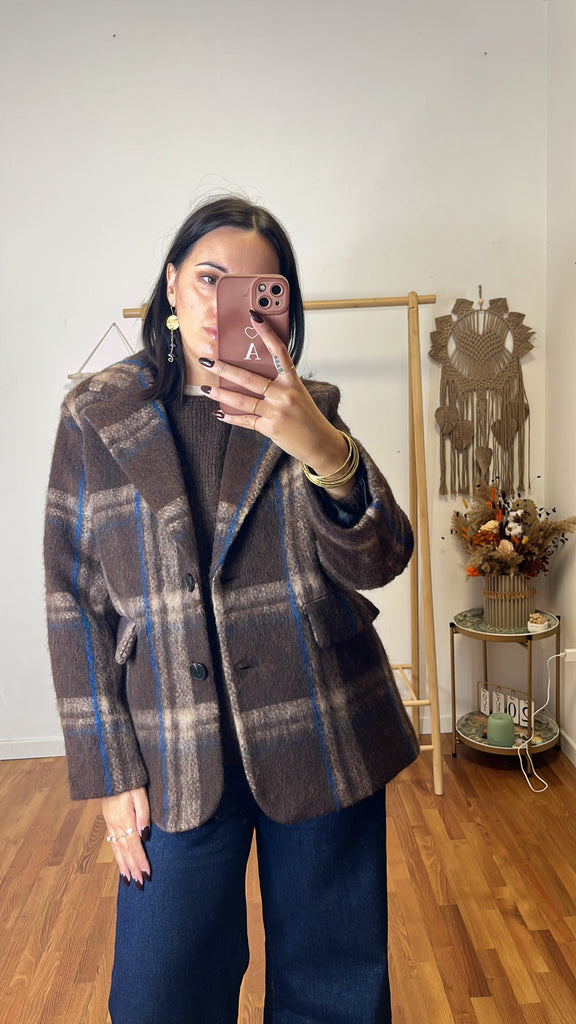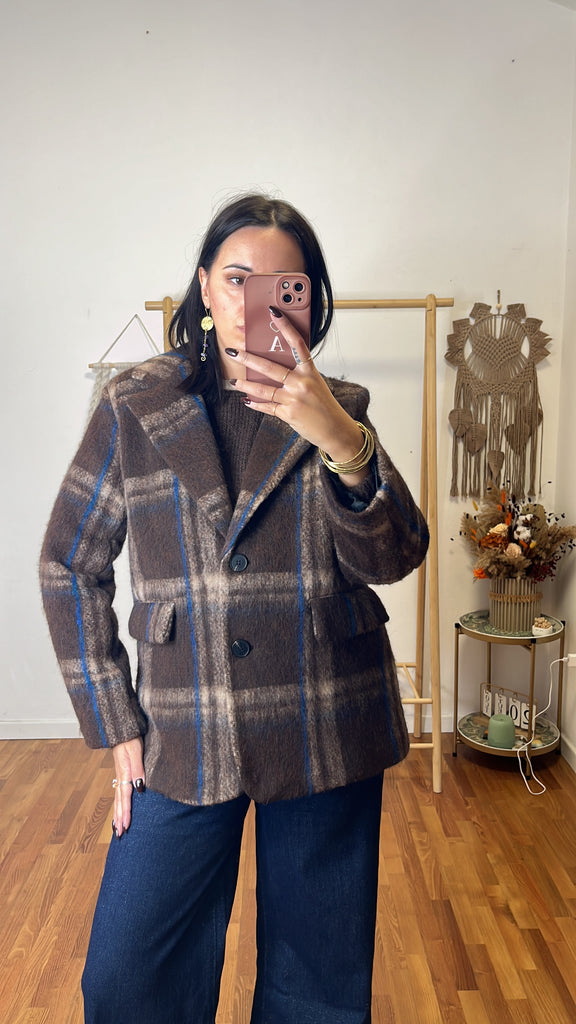 Blazer/cappotto Anna cioccolato, tg unica fino 46, spallina non imbottita , foderato , tasche vere .