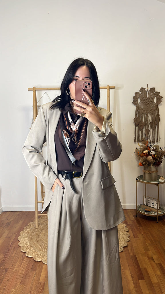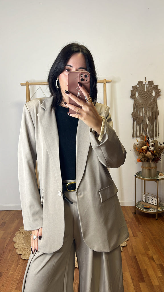 Blazer rosa beige, tg unica fino 46, giacca dal fit morbido , foderato , con un solo bottone .