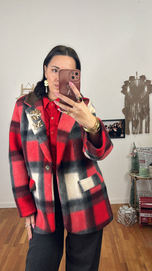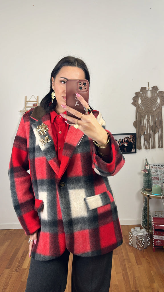 Blazer Moira ,tg unica fino 46, tipo lana cotta,foderata , spille che si possono togliere .