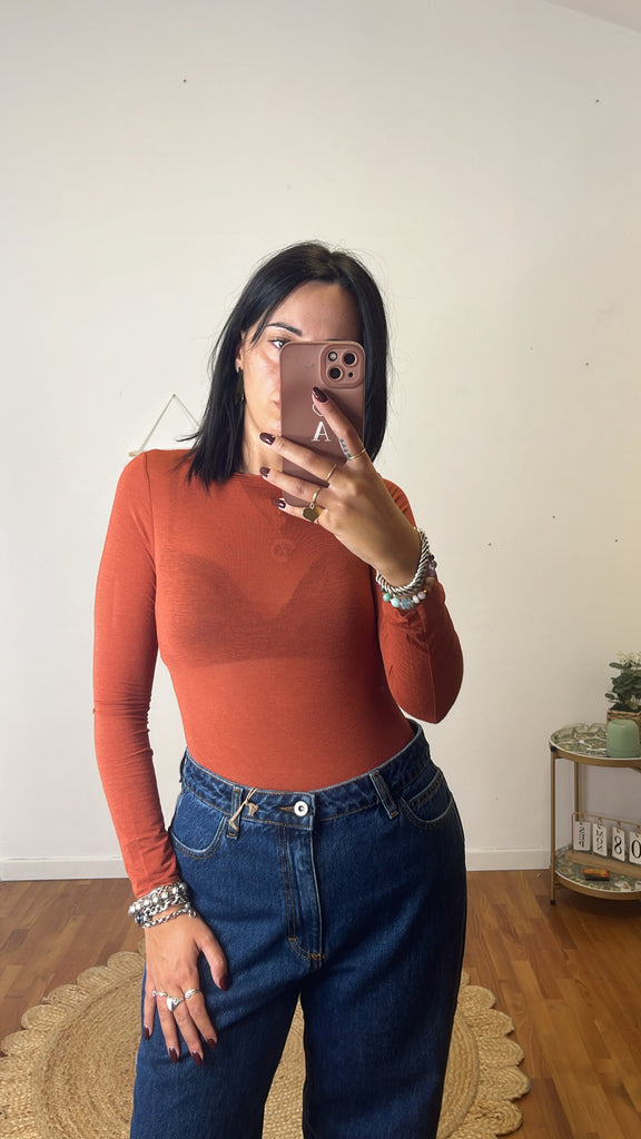 Maglia cashmerina ruggine ,tg unica fino 46, elasticizzata .