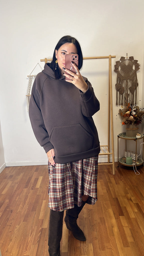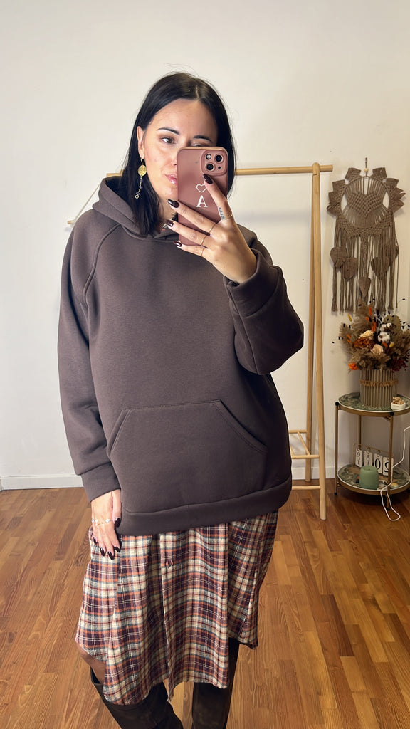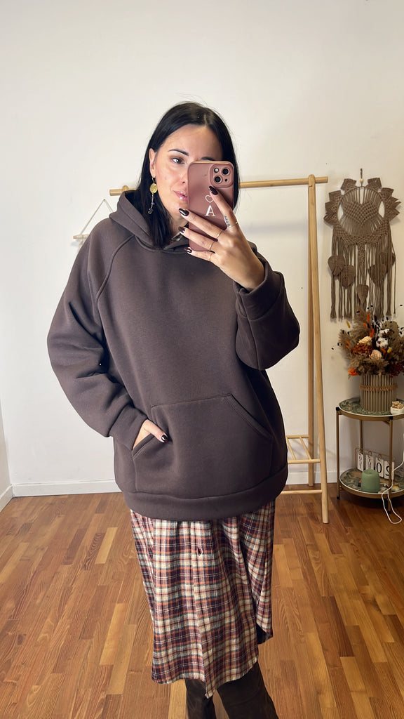 Felpa basic cioccolato , tg unica fino 46, felpata .