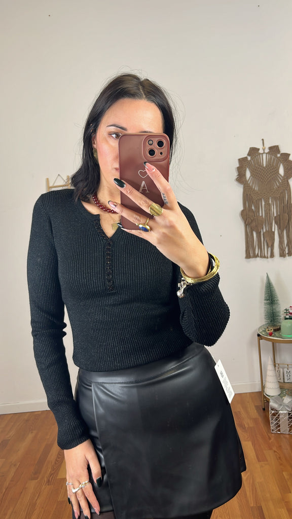 Maglia serafino lurex variante nero, tg unica fino 44/46, costina elasticizzata , non punge