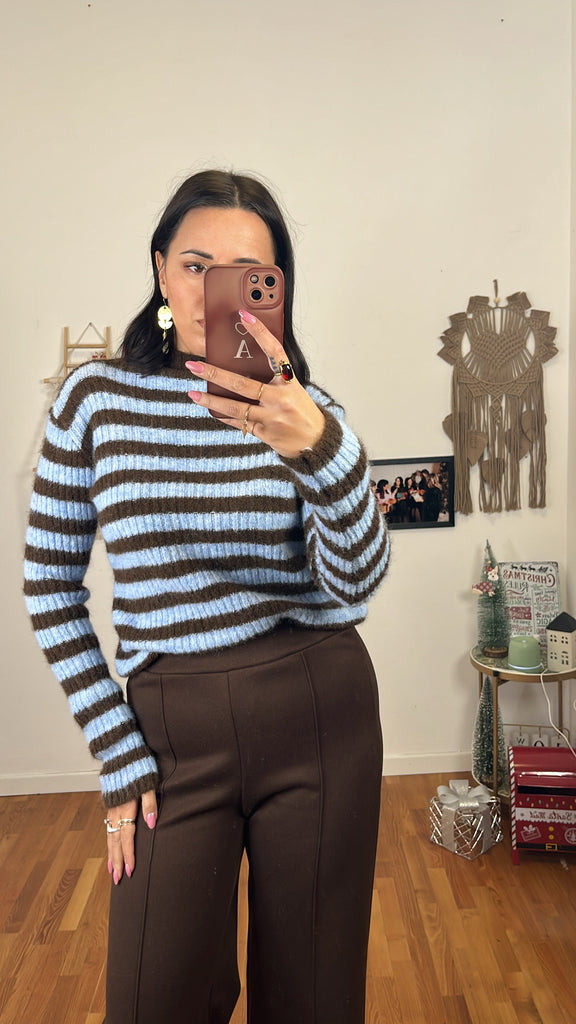 Maglioncino riga celeste e caffè