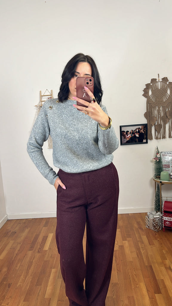 Pantalone Gloria burgundy chiaro, tg unica fino 46 , elastico sul retro e bottone e cerniera sul davanti , tasche vere , caldo e morbidissimo .