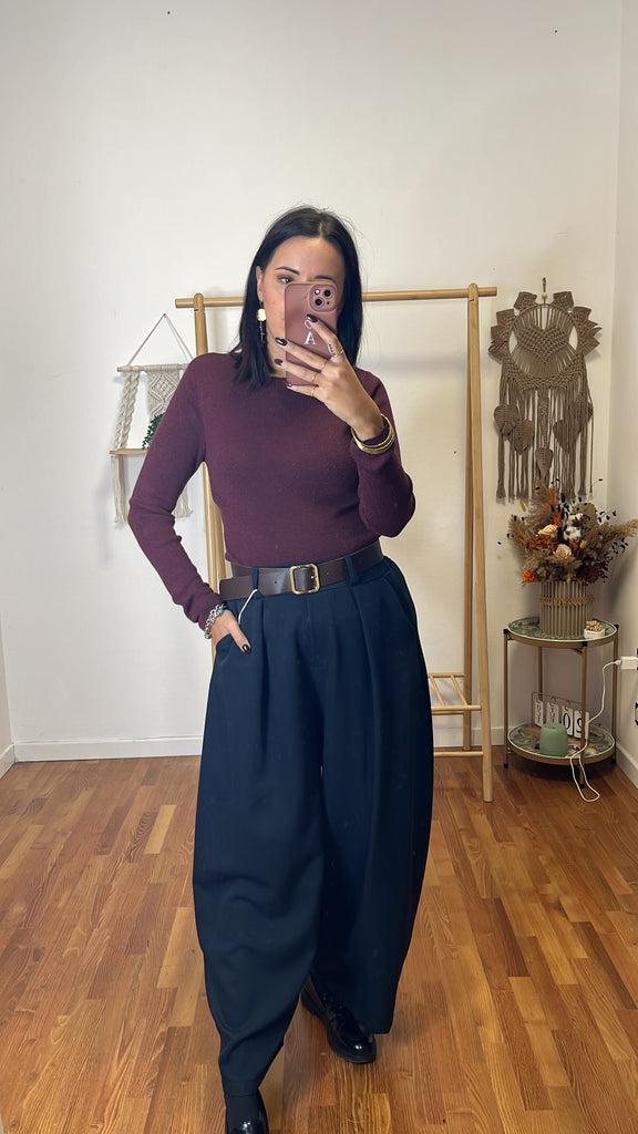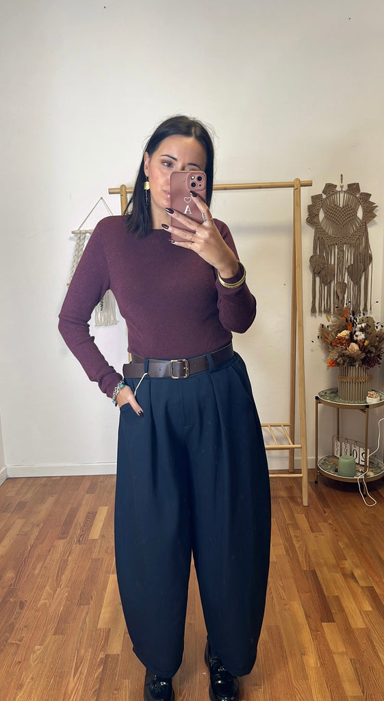 Pantalone Jasmine blu , modello ovetto, tg unica fino 46, tasche vere , dietro tutto elastico .