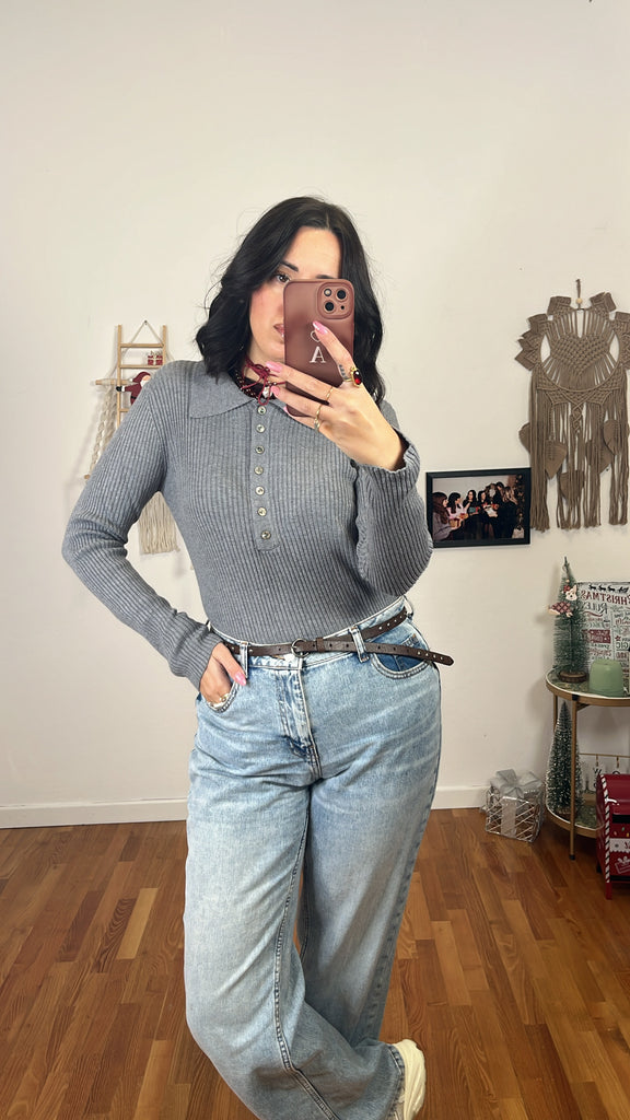 Polo costine grigio , tg unica fino 46, caldo cotone elasticizzato, morbida e calda .