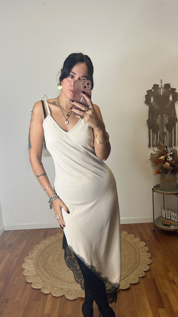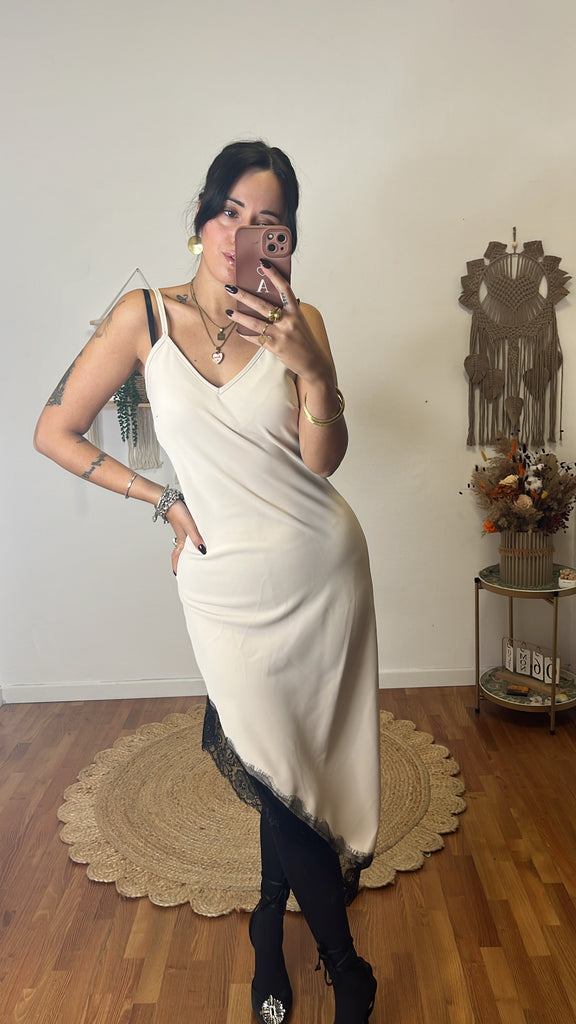 Slip dress Taylor beige, tg unica fino 44/46, il vestito non ha spacchi , la spallina non è regolabile ma fissa , morbido e fluido .