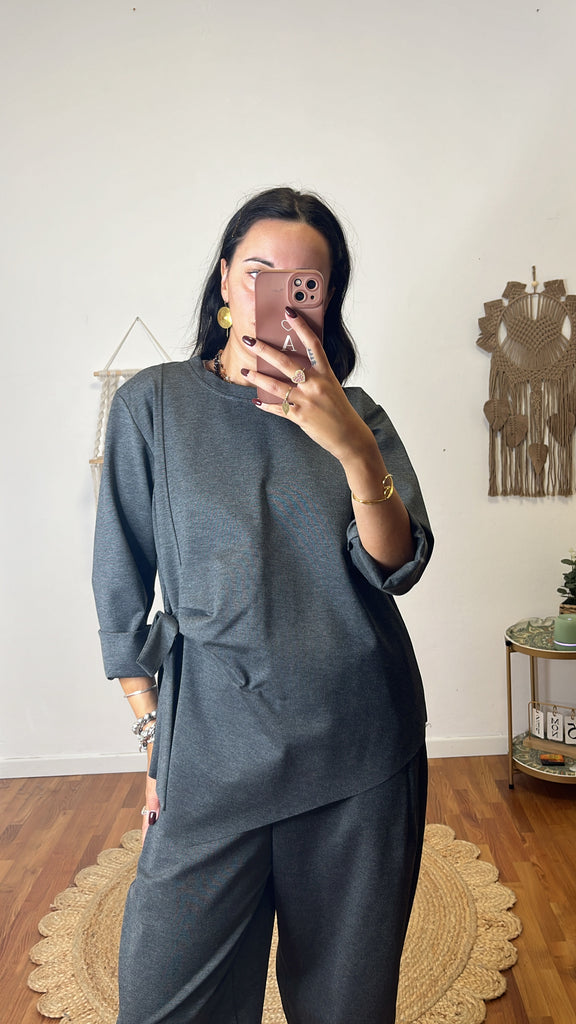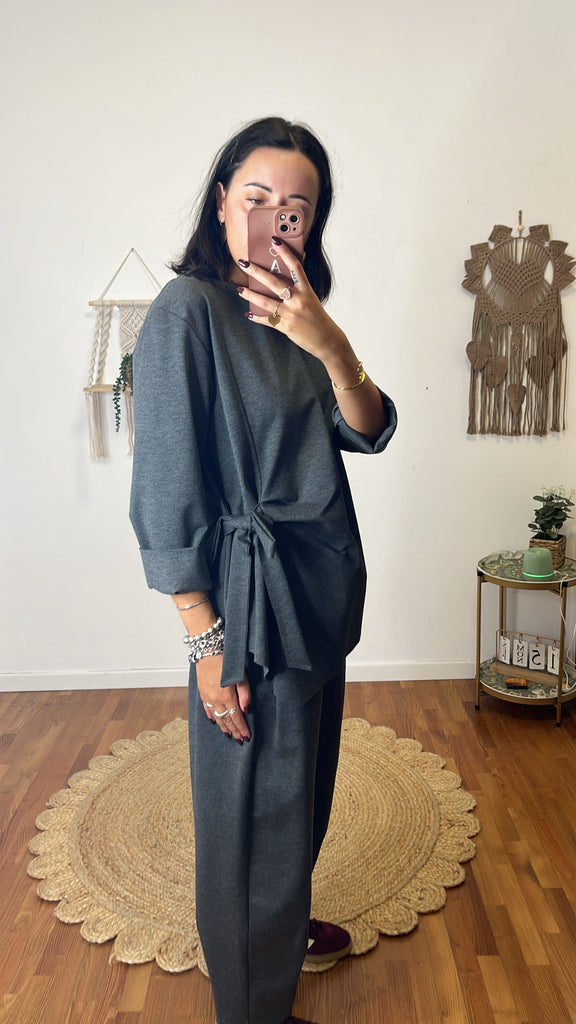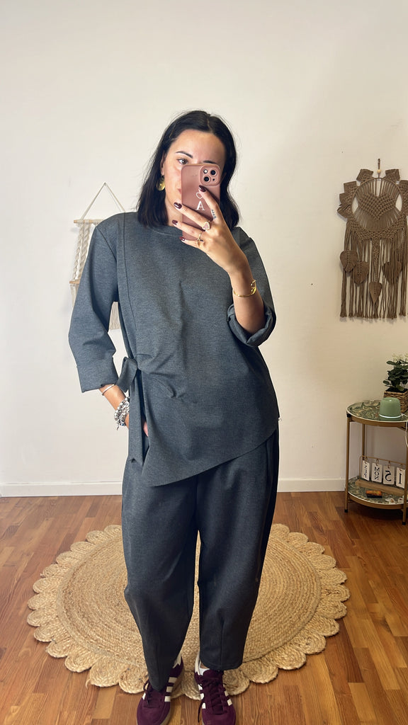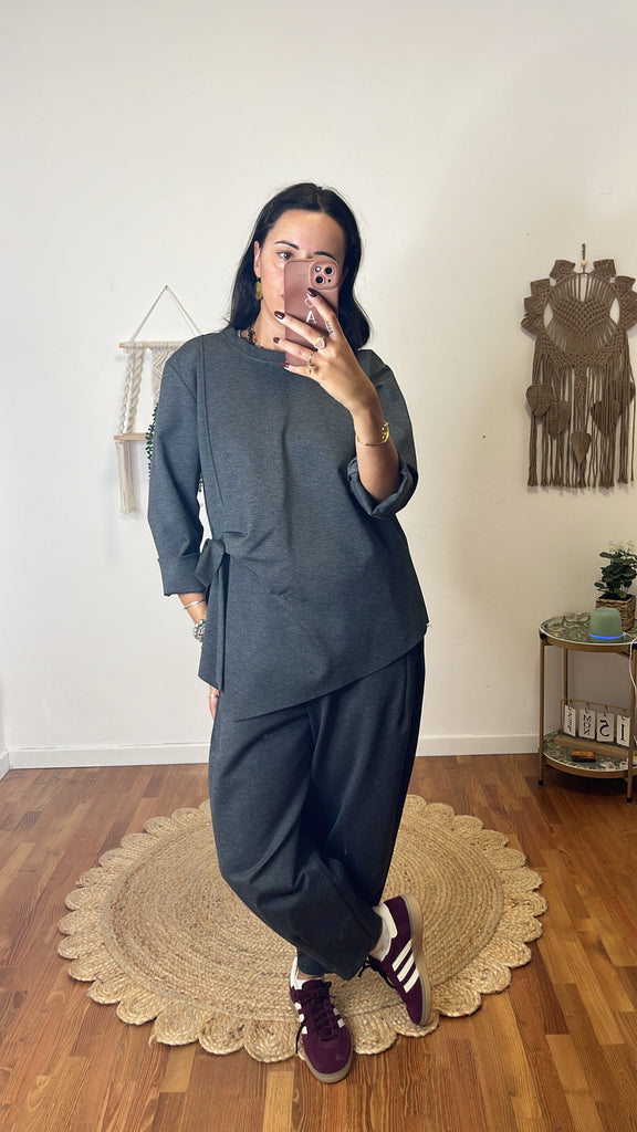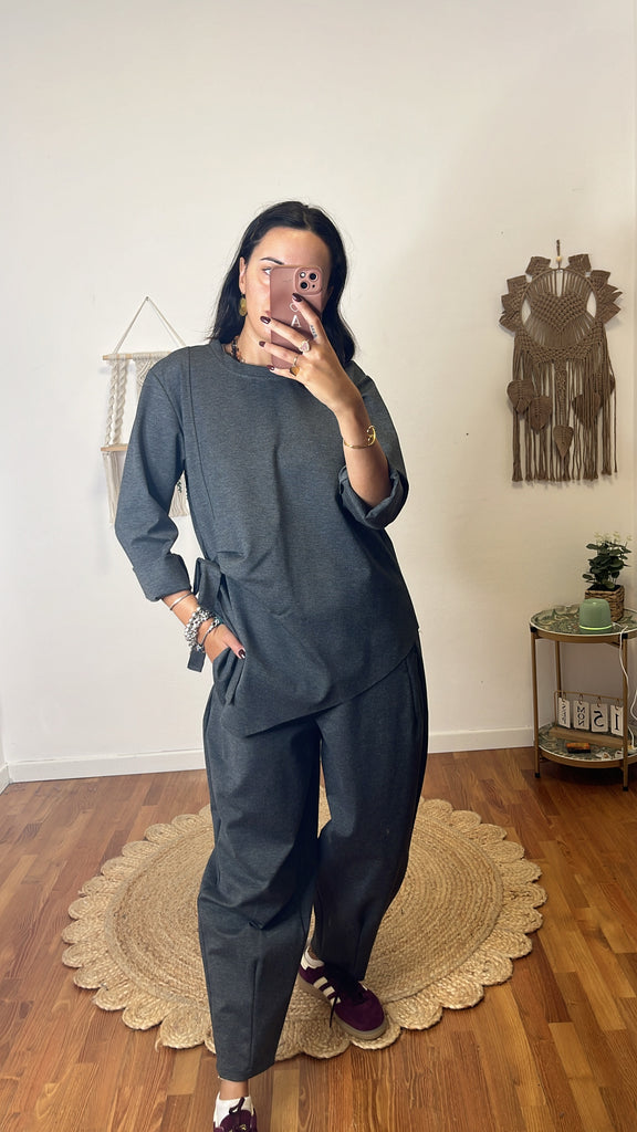 Tuta Penelope grigio antracite ,tg unica fino 46, cotone elasticizzato , comodissima, pantalone tutto elastico modello ovetto .